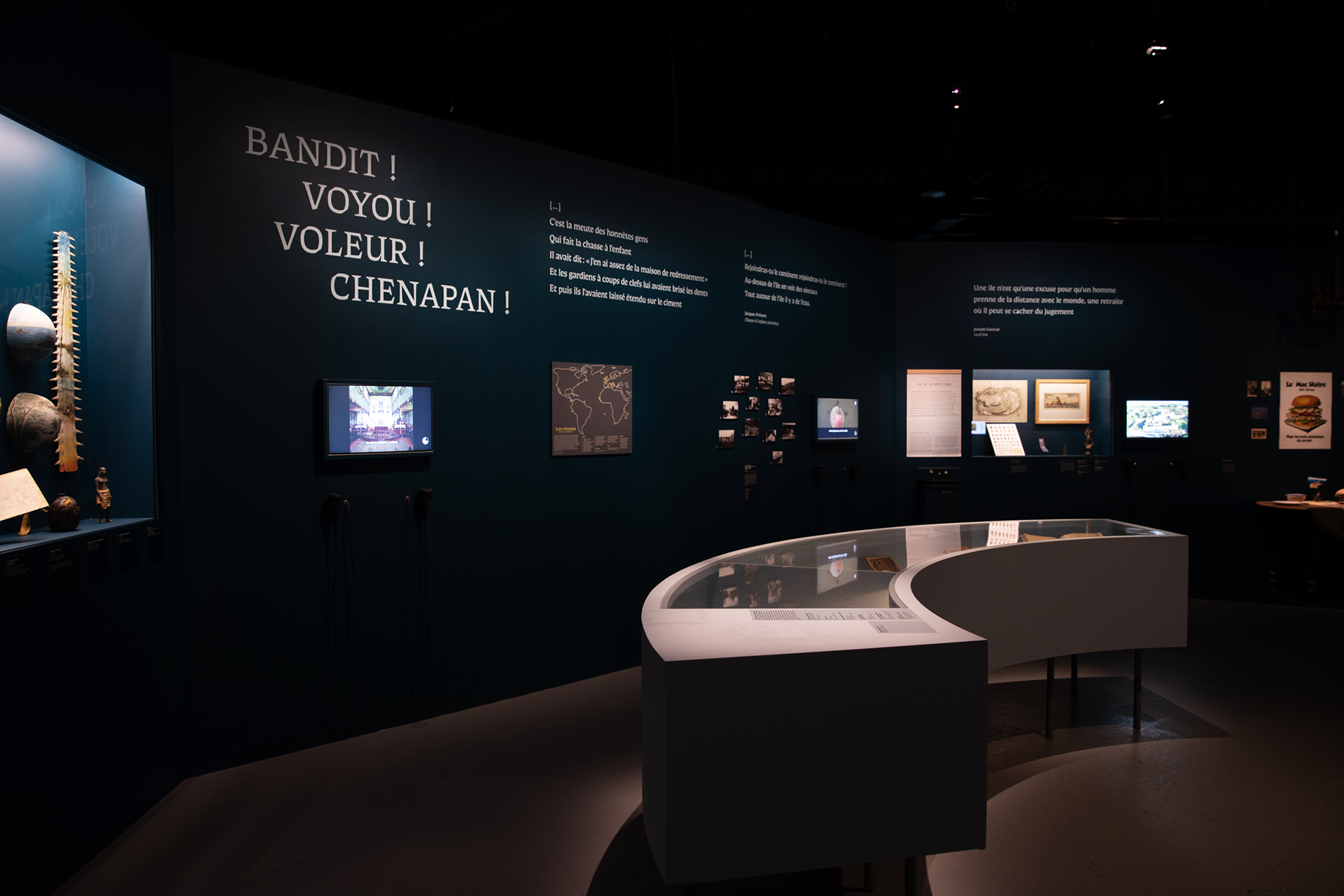 Les îles nourrissent l'imaginaire, évoquant aussi bien le rêve que l'exil. Le visiteur découvre cet univers à travers photos ou vidéos d'archive, objets archéologiques, patrimoniaux mais aussi des œuvres contemporaines, témoignages et dispositifs manipulatoires.